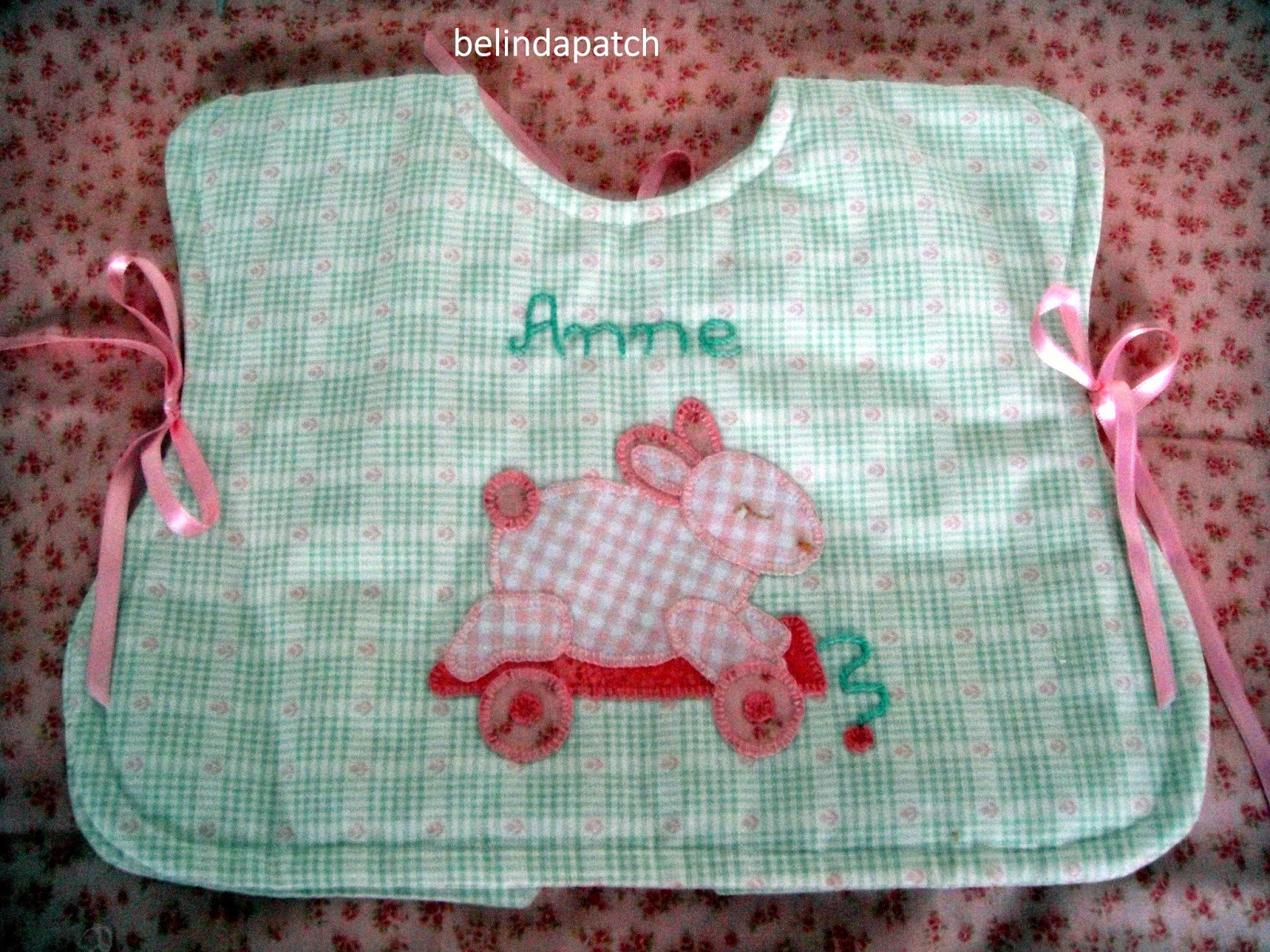 En esta ocasión os muestro un babero con su nombre bordado y un conejito muy salado hecho a feston.